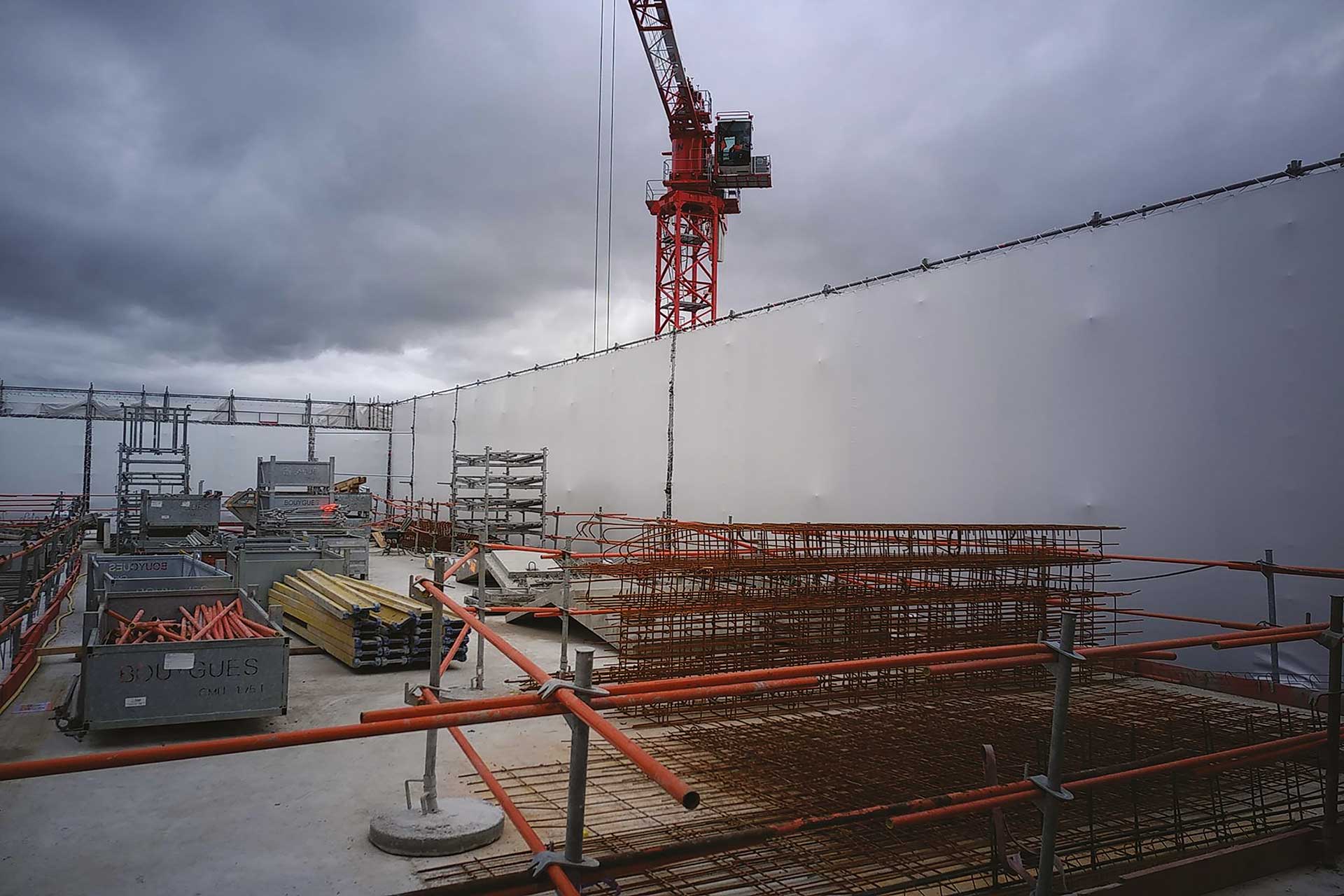 Pour la sécurité des équipes, pour la préservation des structures en cours de construction ou rénovation, l’utilisation de bâches PVC de parapluies offre de multiples avantages! Elles permettent d’isoler les ouvrages des intempéries (pluie, neige) avec une grande fiabilité dans le temps (vs filets et thermo) et assurent aux équipes de travailler en sécurité par tous les temps.